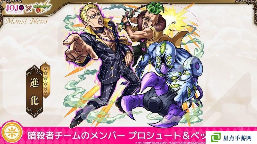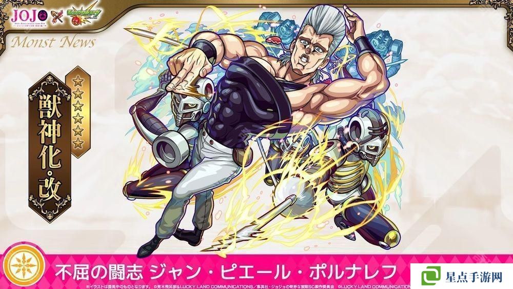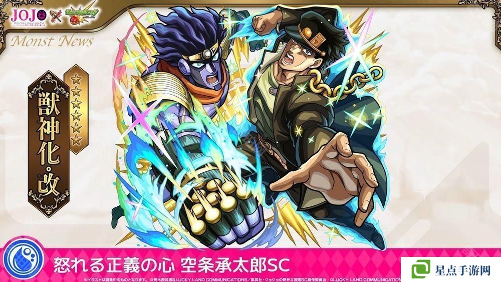 「★6 空条承太郎」、「★6 花京院典明」、「★6 约翰・皮耶尔・波鲁纳雷夫」在本次合作中将开放兽神化・改。此外,《JOJO 的奇妙冒险》过去的合作活动转蛋、合作活动新手礼包将復刻登场。