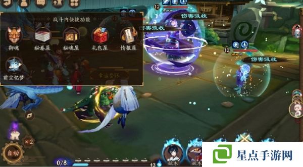 2、等级≥15级的玩家可在以上战斗副本中,点击左上角「战斗内快捷功能」展开功能选项,选择对应功能图标即可跳转使用御魂、秘卷屋、秘魂屋、礼包屋、情报屋、前尘忆梦等功能。