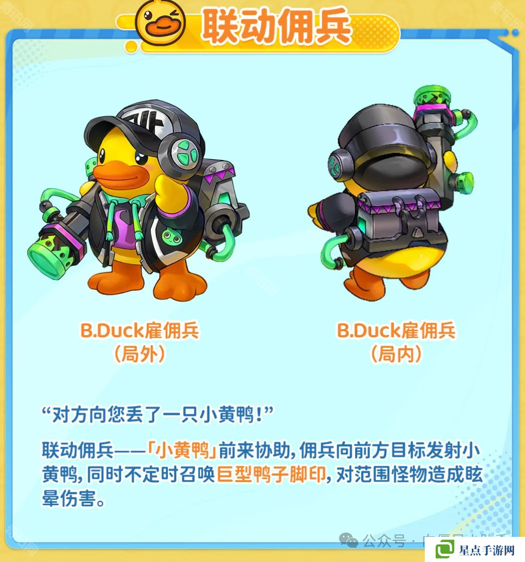 向僵尸开炮B.Duck联动活动怎么样?游戏向僵尸开炮宣布将和B.Duck展开联动,联动期间我们可以获得联动专属城墙、联动专属佣兵和联动专属头像框、聊天框和称号。那么感兴趣的小伙伴接下来就和小编一起看看《向僵尸开炮》B.Duck联动活动介绍吧。