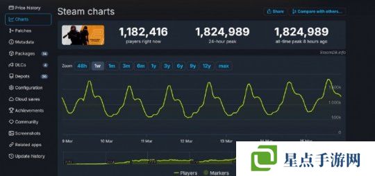 由V社推出的免费FPS游戏《CS2》,近期创造了新的Steam在线人数纪录。其同时在线人数达到了182万4989人,达到了历史最高点。该作的Steam同时在线人数纪录此前为170多万,在今年1月创下。
