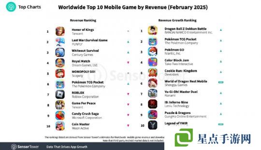 日前,知名数据统计商店Sensor Tower,带来了2025年2月全球手游收入排行。国产游戏《王者荣耀》再度蝉联冠军,《Last War: Survival》首次跃升至第二位。另有《Whiteout Survival》、《Royal Match》和《MONOPOLY GO!》居于前五。