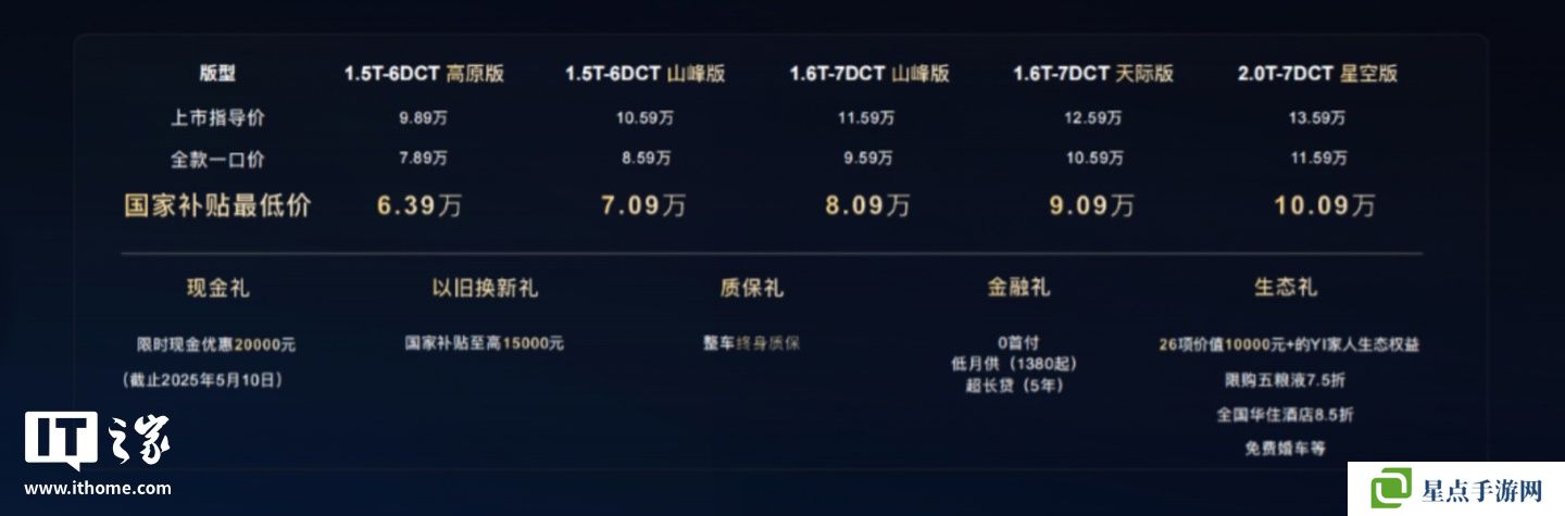 1.5T-6DCT 山峰版:10.59万元,全款一口价8.59万元