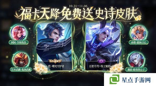 王者荣耀福卡天降活动开启 参与活动有机会获得史诗皮肤
