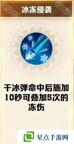 局内词条叠层:干冰弹命中后施加10秒可叠加5次的冻伤