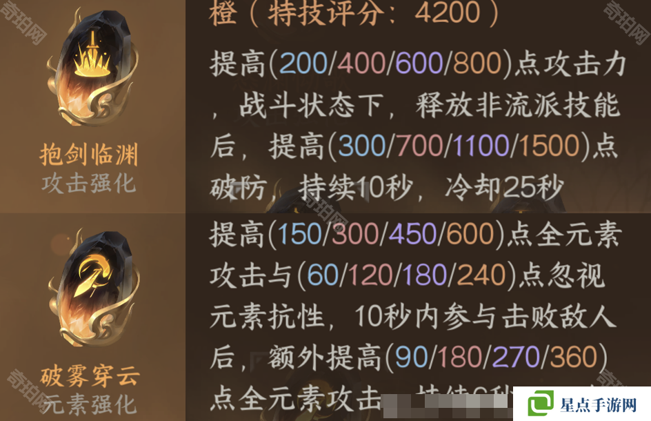 打造效果:一个破防向,一个元素向。破防向提供800点攻击力,战斗时触发1500点破防(40%覆盖率);元素向提供600点元素攻+240元素忽视,击杀/助攻敌人提供360元素攻。