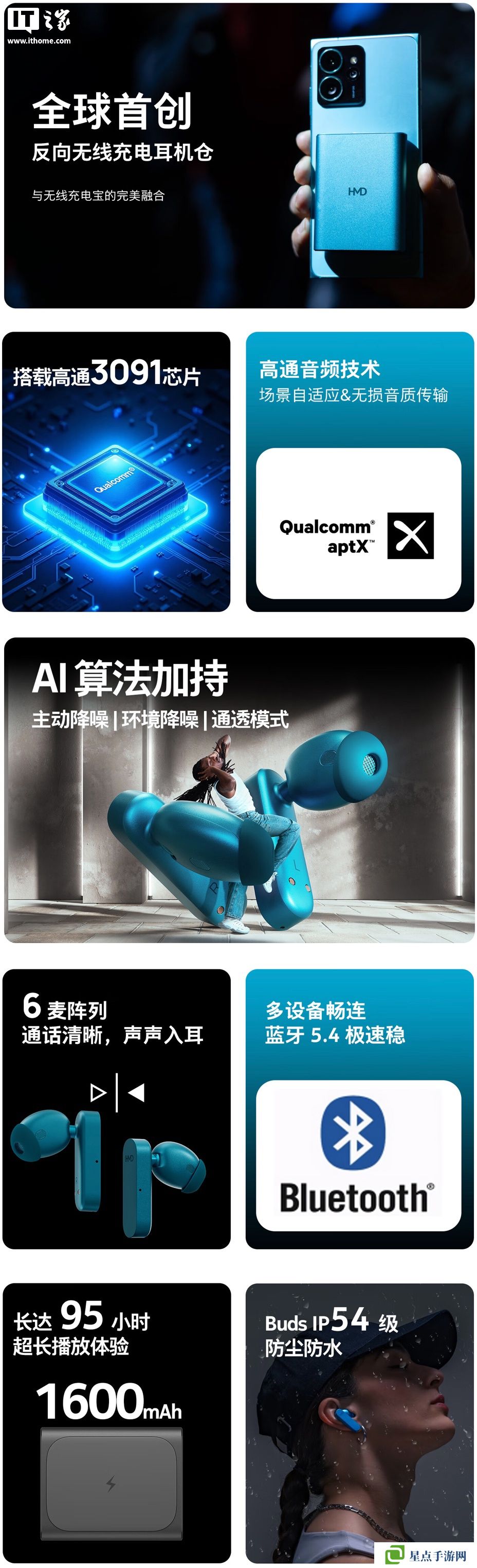 号称“全球首款磁吸式反向无线充电耳机”:HMD Amped Buds 上架售 1199 元
