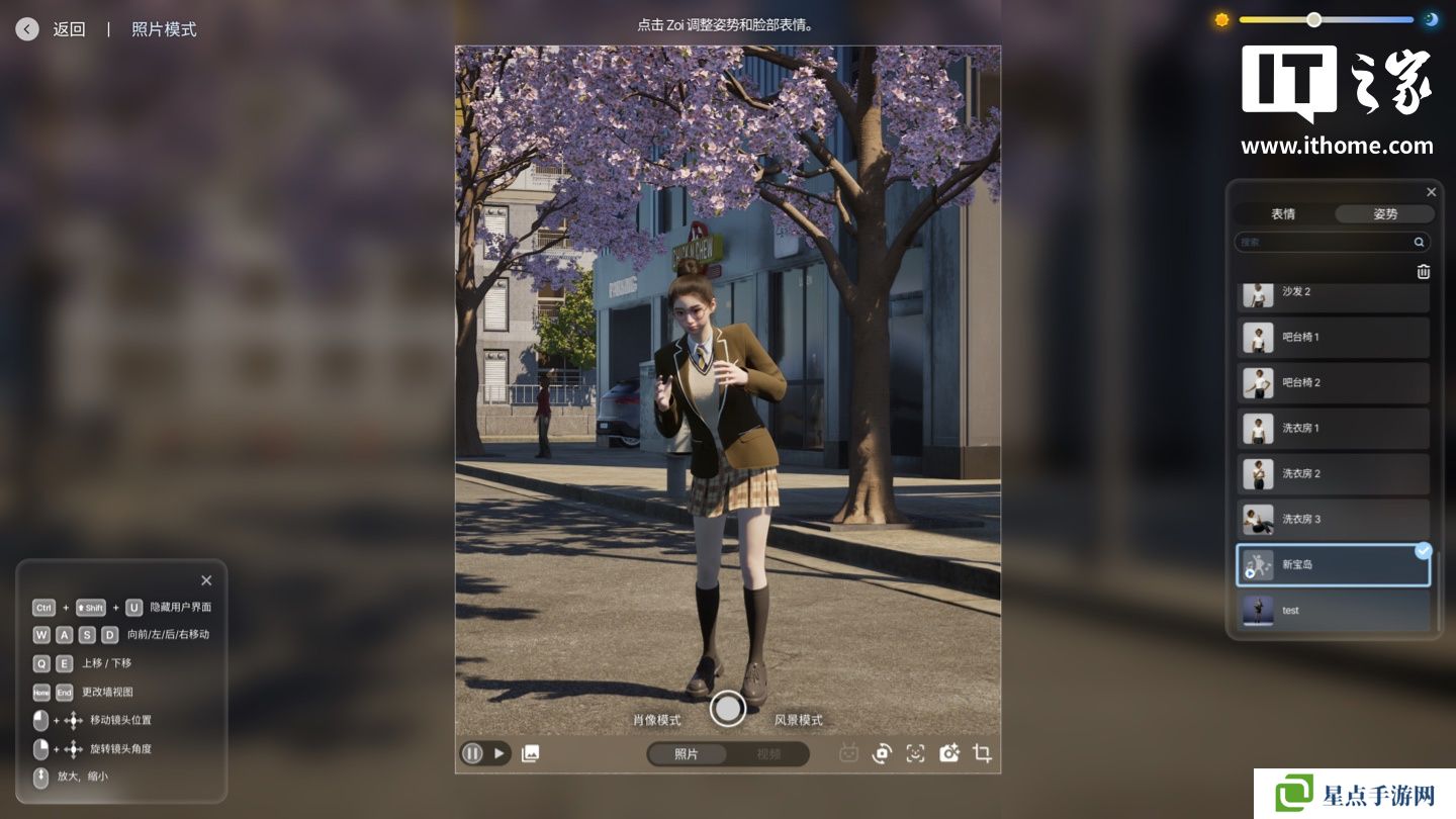 在拍照模式方面,玩家可以点击角色切换表情动作,同时提供了根据现实照片、现实视频生成动作的选项,不过相应AI模型尚待进步,本站使用经过裁切的《新宝岛》(单人跳舞)等各种视频进行测试,生成的动作套用在角色上,实际会出现脚离地的情况。