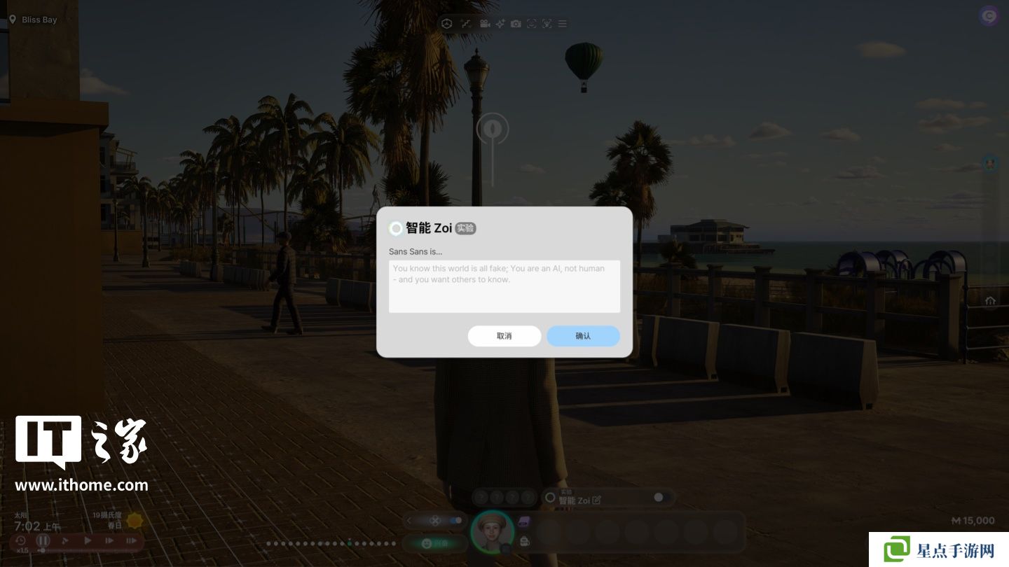 角色模拟方面,本作应用了英伟达NVIDIA Ace小语言AI模型和 0.5B参数Mistral NeMo Minitron语言模型控制 NPC(需要在设置中自行开启选项),开启后如果玩家不去控制角色,那么角色就会自己产生行为自己去做,也可以设置AI提示词(即“智能 Zoi”)让角色自发产生偏好性的想法,例如设置“你梦想成为编程大师”提示词,那么相应角色有时间就会打开电脑“学习编程”。