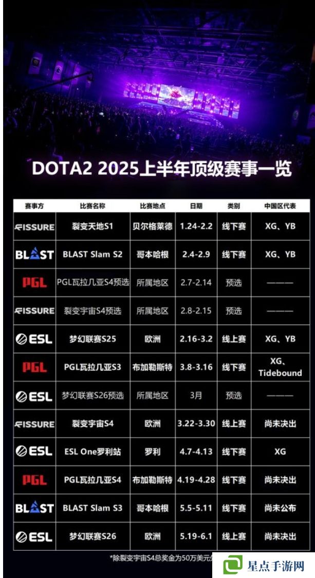 裂变天地S1和BLAST Slam S2已经落下帷幕,Tundra战队力夺两冠。而在此期间,又有新的赛事出炉,本赛季已经官宣的顶级赛事如下: