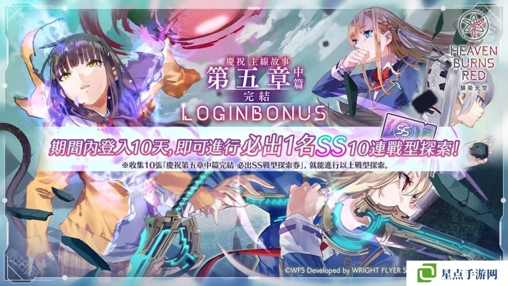 期间内将举办 1 天可获得 1 张「庆祝第五章中篇完结必出 SS 战型探索券」的登入奖励,收集 10 张就能进行必出 1 名 SS 战术型态的 10 **型探索。