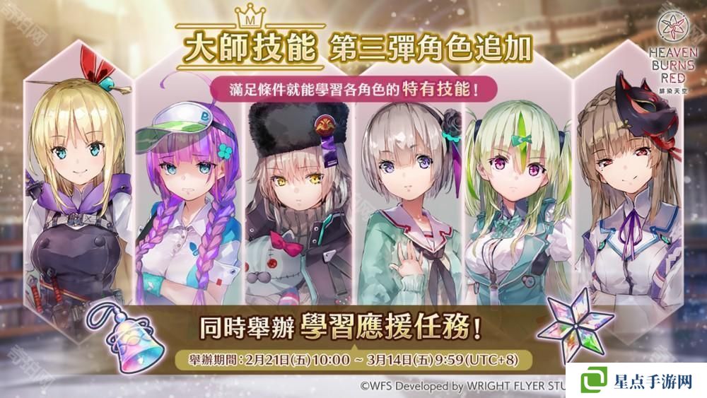 2025 年 2 月 21 日(五)10:00 起,追加大师技能第三弹角色,本次追加的是水濑李、神崎阿黛尔海德、伊达朱里、大岛五十铃、夏洛特・斯可波夫斯加、桐生美也上述 6 名角色。