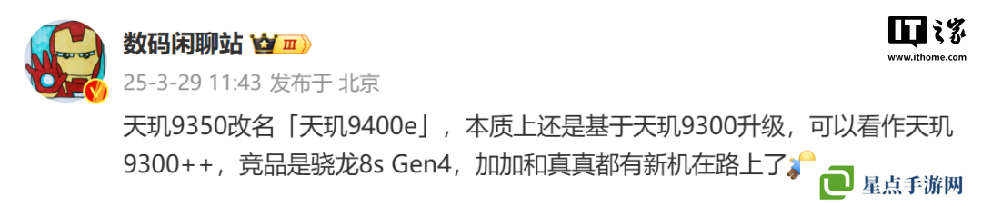 也许是受到 iPhone 16e 命名的启发,也可能是汲取了 PC 行业英特尔和 AMD 的命名方式,博主 @数码闲聊站 的最新爆料显示原本的“天玑 9350”已经改名为“天玑 9400e”了。