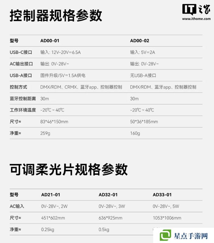 在调控方式方面,该系列可调柔光片的控制盒(AD00-01)内置 Lumen- radio 收发一体芯片,支持影视级 CRMX 无线稳定调控,此外还支持手机 App、控制盒旋钮等方式调控。