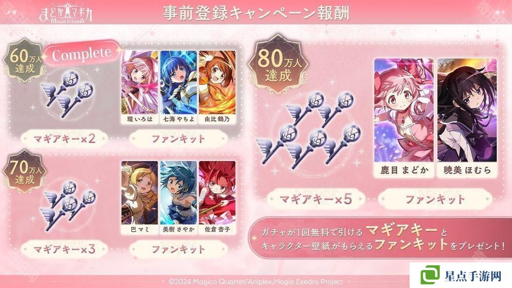 官方表示,《魔法少女小圆 Magia Exedra》的事前预约数已达到 60 万。根据事前预约数,玩家将可获得游戏中可用于抽转蛋的魔法钥匙、以及角色的桌布。