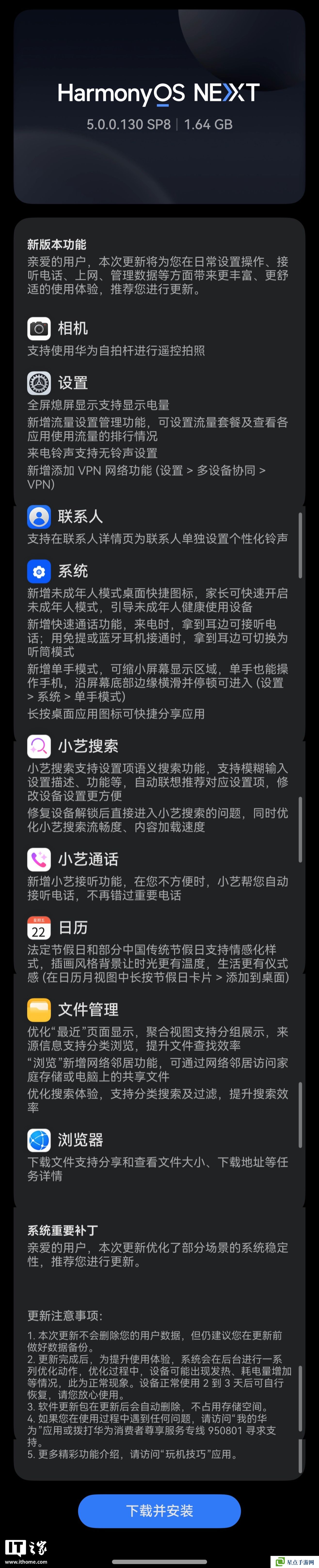 本站 3 月 3 日消息,华为 Mate 70系列手机今日获鸿蒙HarmonyOS NEXT5.0.0.130版本升级,系统包大小约 1.64GB,新增全屏熄屏显示支持显示电量、小艺接听等功能。