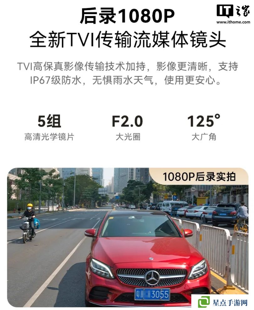 后录 1080P 画面,5 组光学镜片、F2.0 光圈、125° 视角