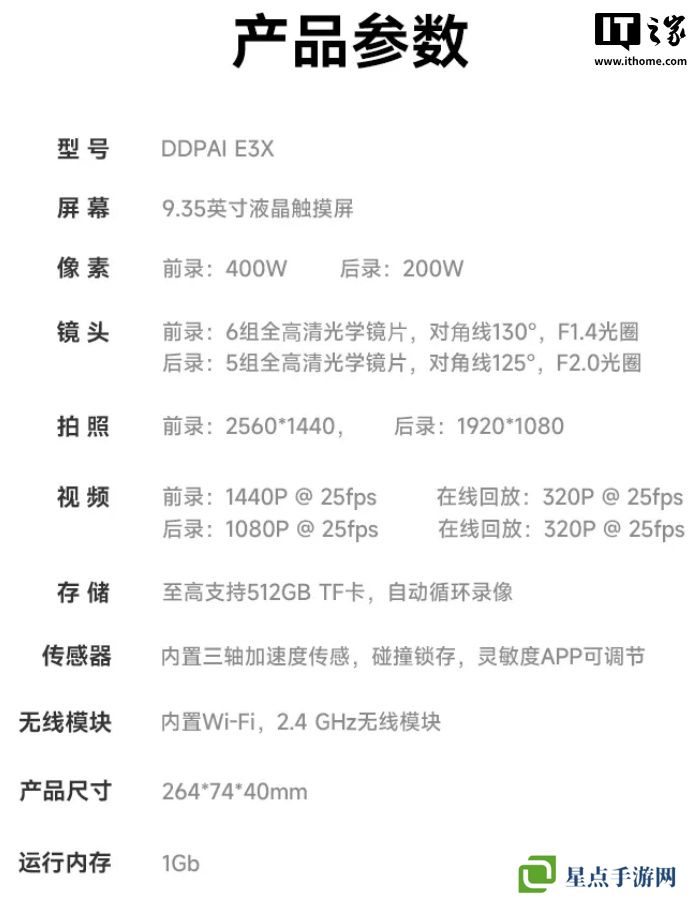 盯盯拍 2K 全屏流媒体后视镜 E3X 售价 319 元,现已在京东开售,本站附配置表如下: