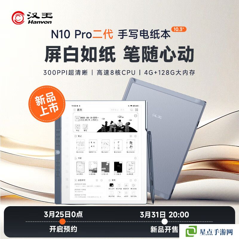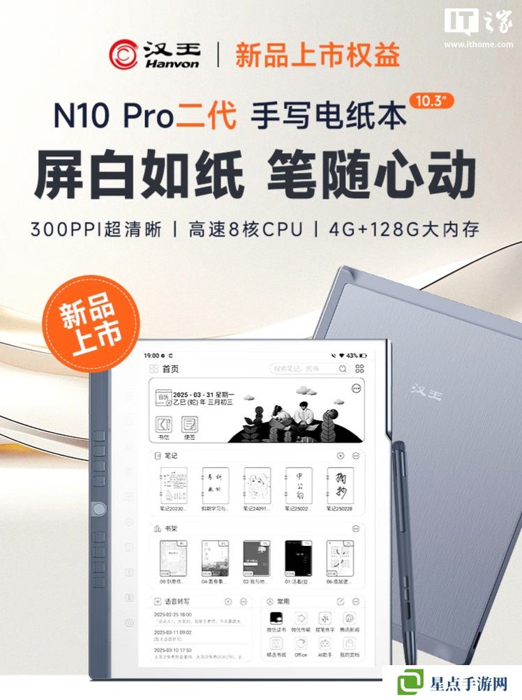 汉王 N10 Pro 二代电纸书上架:10.3 英寸 300 PPI 黑白墨水屏、标配手写笔,3089 元