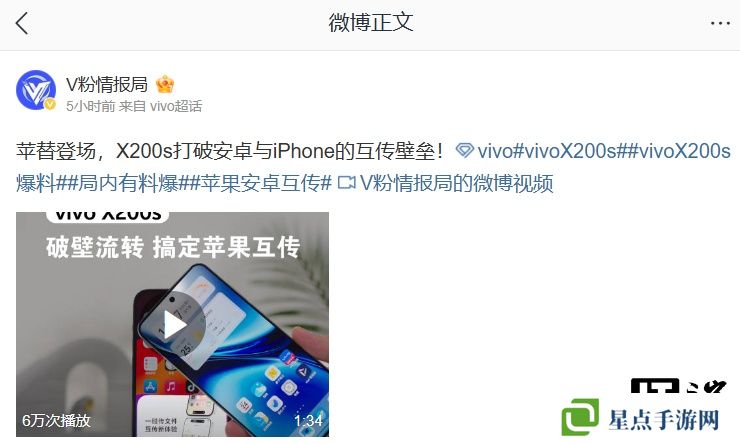据介绍,vivo X200s 手机支持「破壁流转」,可接 iPhone 电话、接收 iPhone 短信 / 通知等信息,同时还支持 iPhone 位置共享(视频画面显示,iPhone 端需下载 vivo 推出的互传 App)。