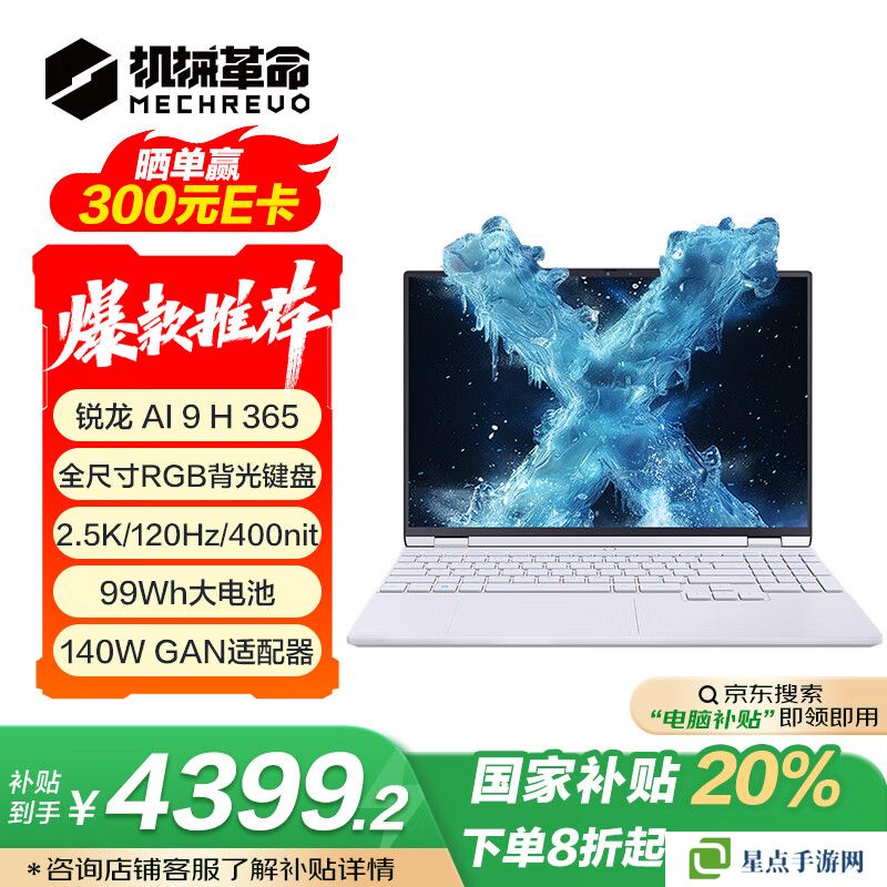 2025 款机械革命无界 15X Pro 暴风雪笔记本 3 月 31 日首销:AI 9H 365 + 32G + 1T 国补到手 4399.2 元