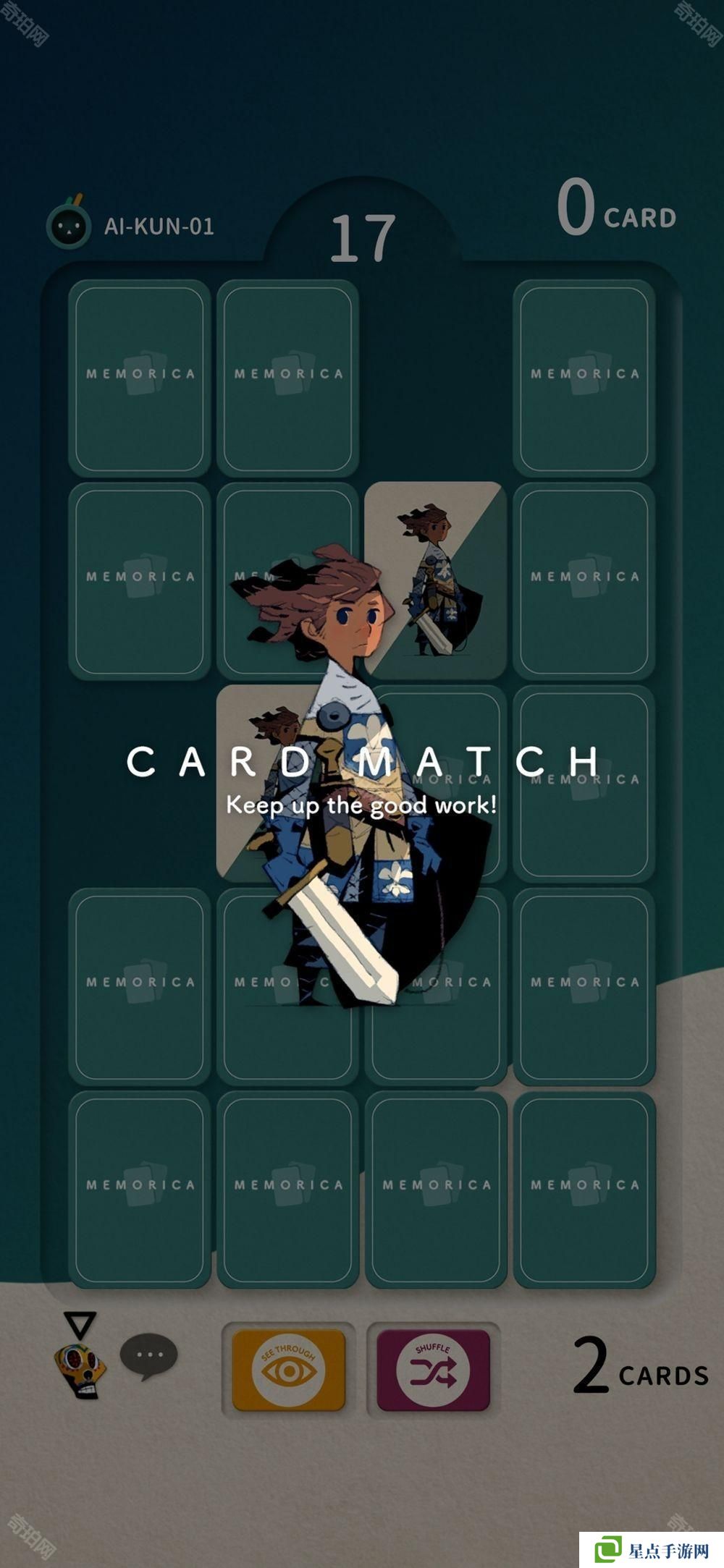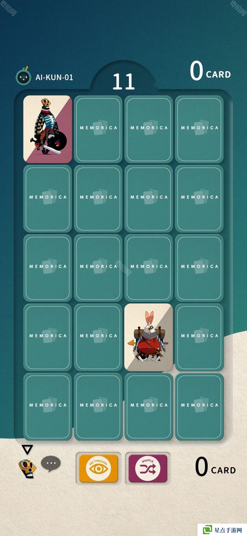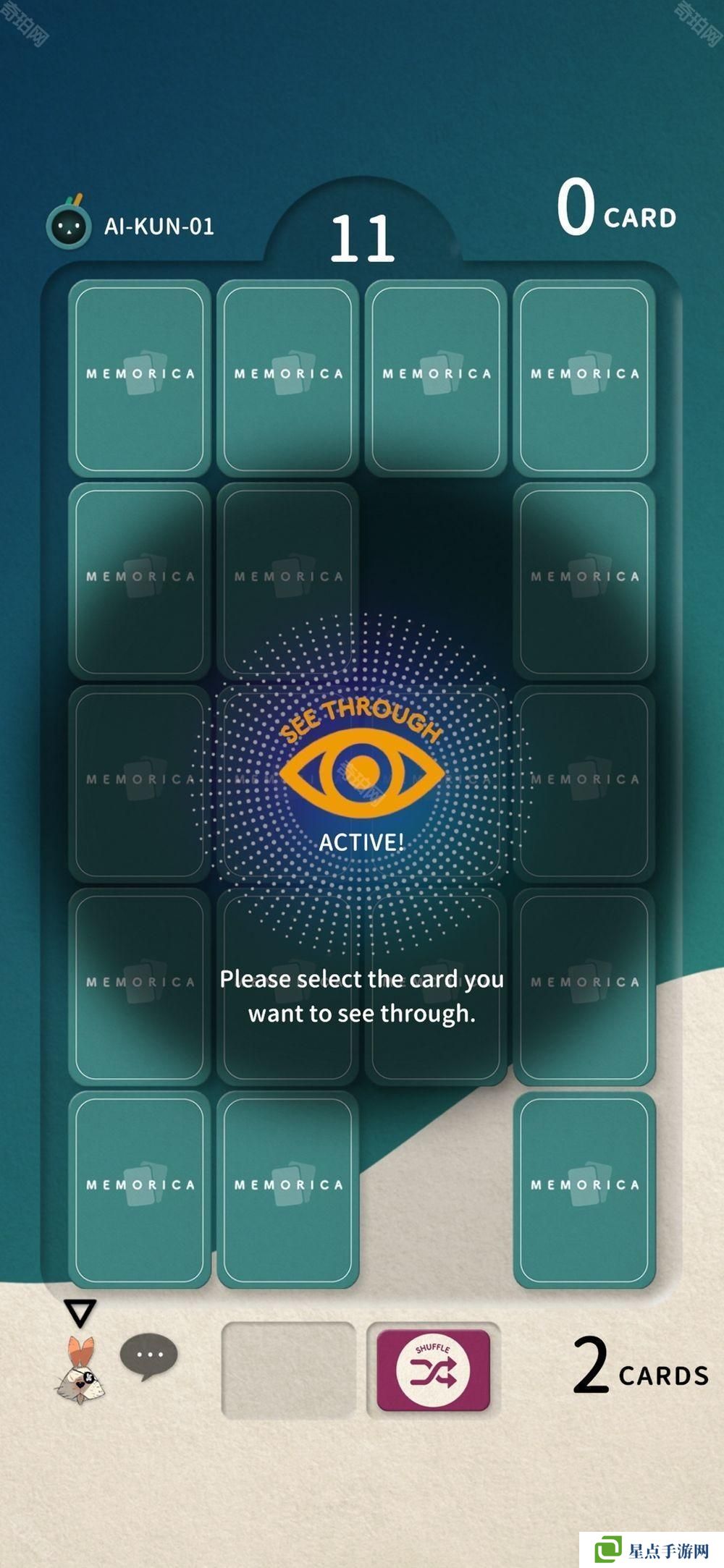 游戏中技能卡分为「3 Cards」、「暗闇」、「洗牌」和「透视」四种类型,功能包括让翻开的卡牌变得不可见、重置卡牌位置等,将根据玩家的使用方式对游戏进程产生巨大的影响,是一款简单却富有深度战略性的作品。