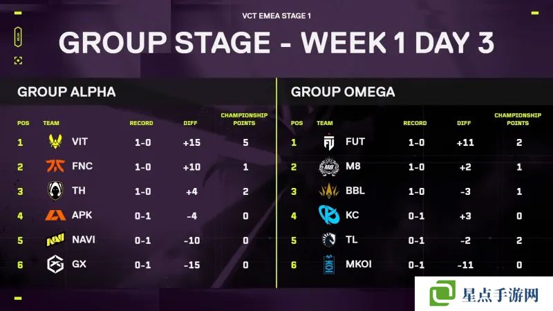 VCT EMEA联赛第一赛段第一周比赛结束: