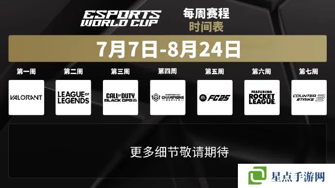 EWC电竞世界杯官方发布2025年七周赛程表,赛事7月7日开赛至8月24日结束,详细赛程如下: