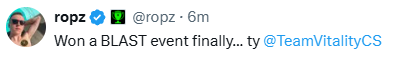 Robin Kool | ropz:终于赢下一个BLAST赛事的冠军了,谢谢Vitality。