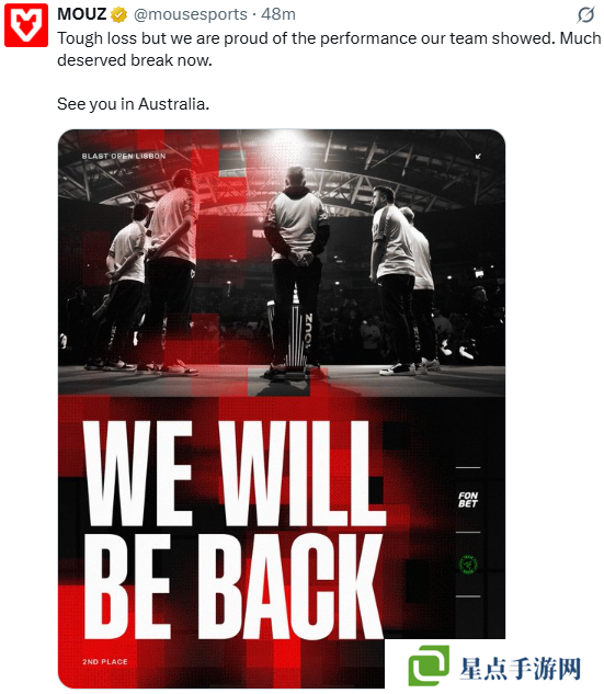 MOUZ:虽败犹荣,我们为队伍的表现感到骄傲。现在是应得的休整时间。