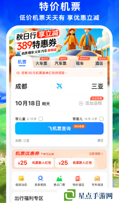 具有特色的热门应用,不仅提供火车票,景点门票,酒店预订,还提供特价机票订购。出行一站式平台,提供具体的开售时间,镇晚点候补人数查询等多种特色服务功能较为全面,让你的旅途变得更加顺畅。有出色的抢票福利,学生可全年享受极高的优惠价格。特价机票实时推送全球静享极低价格。